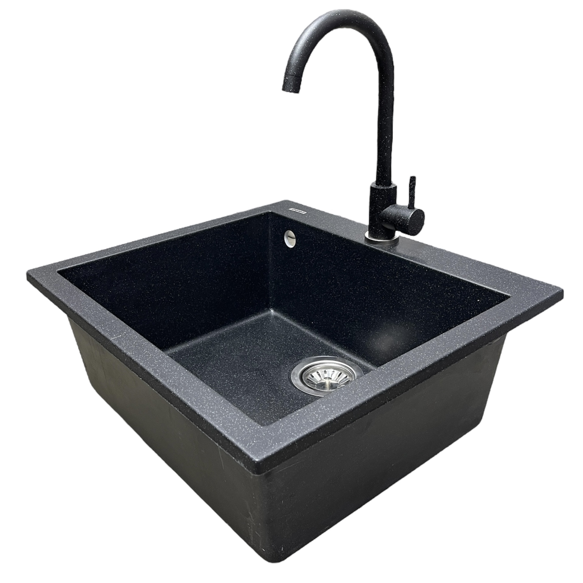Набор кухонный Adamant Univer, искусственный камень, квадрат, без крыла, 560х500х200мм, чаша – 1, врезная, черный + смеситель
