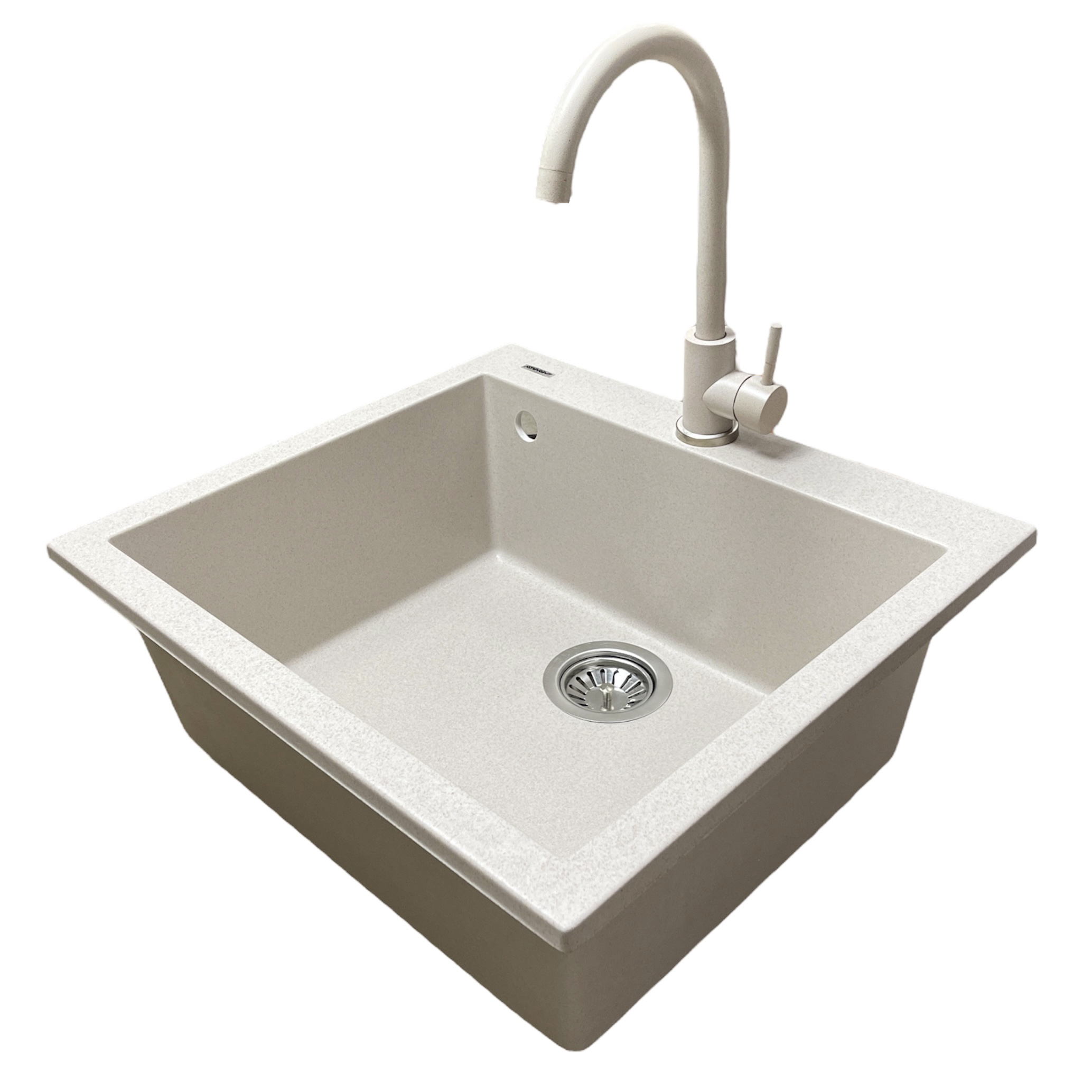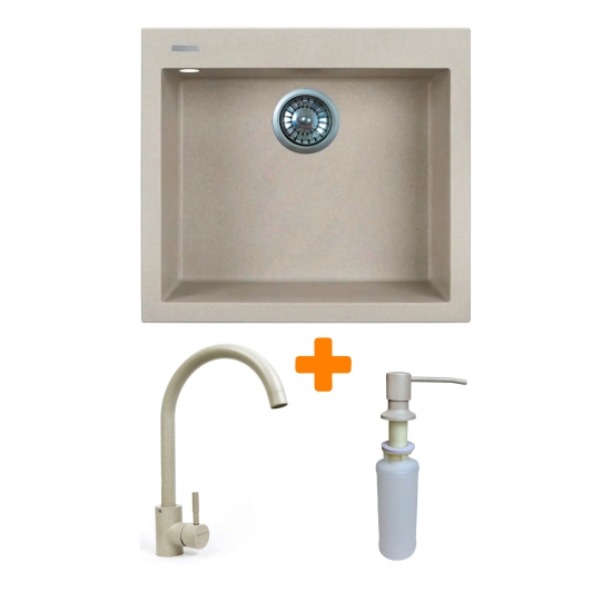 Набір Adamant Univer поєднує квадратну врізну мийку зі штучного каменю, змішувач та дозатор – зручне рішення для продуманої кухні. Технологія Solid Surface забезпечує міцність, термостійкість та простоту догляду. Глибока чаша створює комфорт під час щоденної роботи, а компактна конструкція без крила допомагає раціонально використовувати простір. Дозатор робить подачу мийного засобу акуратною та зручною, підтримуючи порядок у робочій зоні.