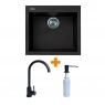 Опис Набір кухонний Adamant Univer, штучний камінь, квадрат, без крила, 560х500х200мм, чаша - 1, врізна, чорний + змішувач та дозатор