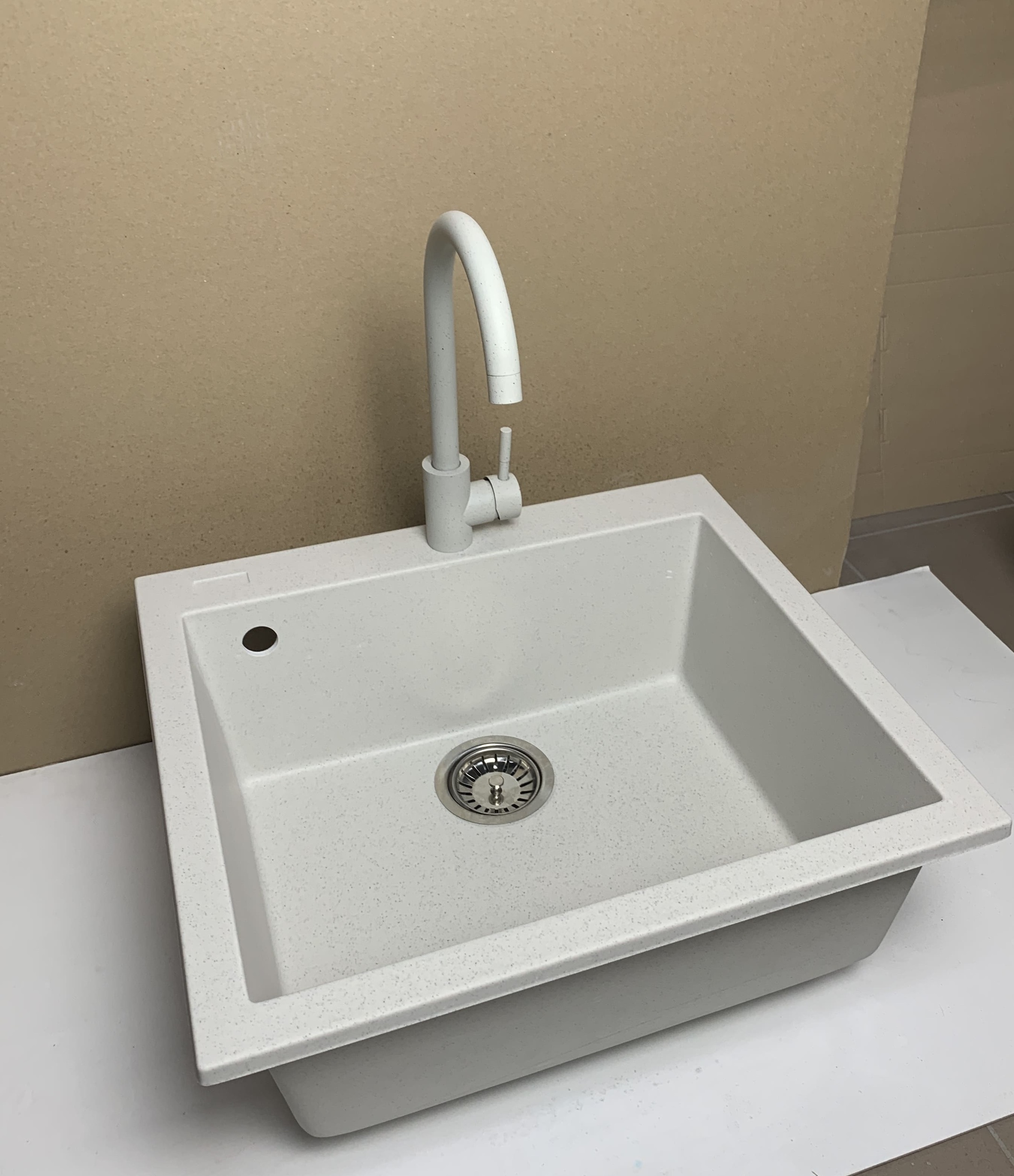 Головна - Побутова техніка, інструменти та товари для дому - Сантехніка - Кухонні мийки - Adamant - Набір кухонний Univer, штучний камінь, квадрат, без крила, 560х500х200мм, чаша - 1, врізна, Old stone + змішувач + дозатор + ополіскувач склянок + коландер