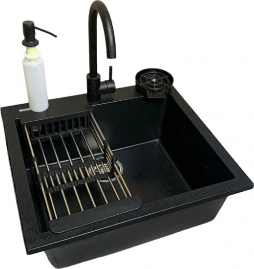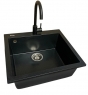 Фото Набір кухонний Adamant Univer, штучний камінь, квадрат, без крила, 560х500х200мм, чаша - 1, врізна, чорний + змішувач + дозатор + ополіскувач склянок + коландер