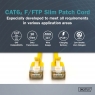 DIGITUS Slim Series CAT 6A — серія ультратонких патч-кордів для 10-гігабітних мереж. Завдяки зовнішньому діаметру лише 3.8 мм (±0.15 мм) та надгнучкій LSZH-оболонці кабель ідеально підходить для щільних патч-панелей, комутаційних шаф та вузьких кабельних каналів.