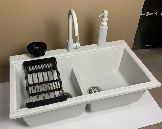 Мийки Deante Momi - це суть мінімалізму, елегантності та функціональності. Адресована всім, хто цінує не тільки стиль, але і гармонію і легкість. Незважаючи на простоту форми, кожен елемент був продуманий, щоб відповідати найвищим стандартам зручності використання. Незважаючи на те, що раковини Momi зберігають ті ж зовнішні розміри, вони пропонують дивовижну ємність, тим самим стаючи майстром практичності на кухні. Вони легко вміщують великі каструлі або деко прямо з духовки, пропонуючи безцінний простір, який забезпечує комфорт і свободу дій.