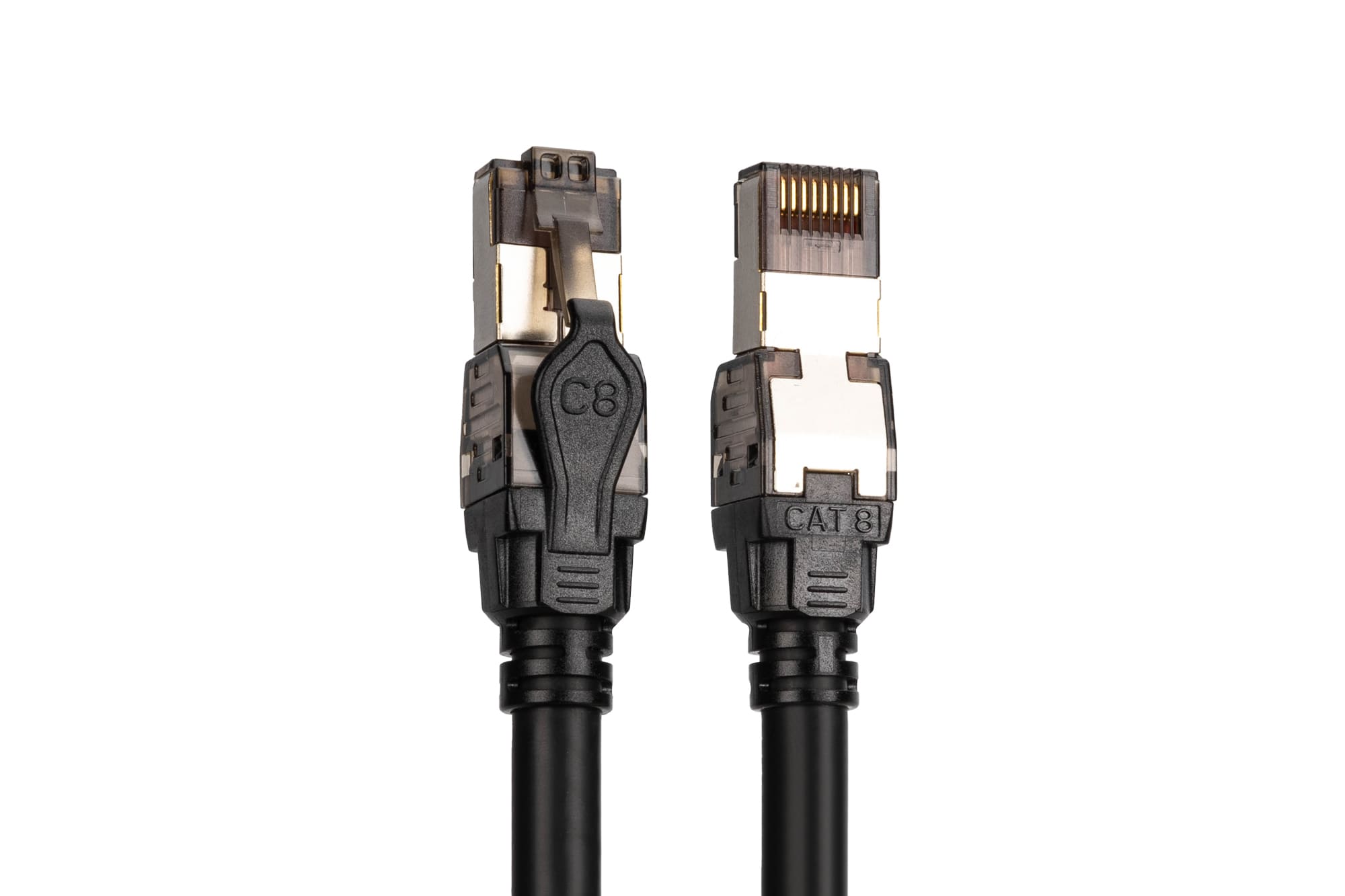 Подвійне екранування S-FTP (фольга на кожній парі + загальна мідна обплетка) гарантує мінімальні перешкоди навіть у найскладніших умовах дата-центрів. Товщина AWG 24/7 та чиста мідь забезпечують низький опір та підтримку високої потужності PoE (до 100 Вт). Литі конектори з захистом фіксатора та потрійним позолоченням контактів.