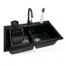 Опис Набір кухонний Adamant Similar, штучний камінь, прямокут., без крила, 885x505x230мм, чаша - 2, врізна, антрацит + змішувач + дозатор + ополіскувач склянок + коландер