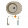Головна - Побутова техніка, інструменти та товари для дому - Сантехніка - Кухонні мийки - Adamant - Набір кухонний Ovum, штучний камінь, овальна, з крилом, 615х495х200мм, чаша - 1, врізна, Сахара + змішувач та дозатор