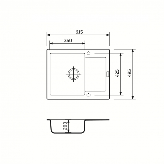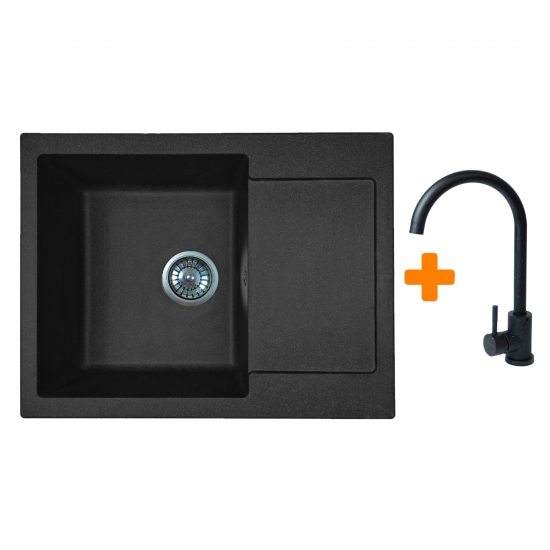Опис Набір кухонний Adamant Minimal, штучний камінь, прямокут., з крилом, 615х495х200мм, чаша - 1, врізна, чорний + змішувач