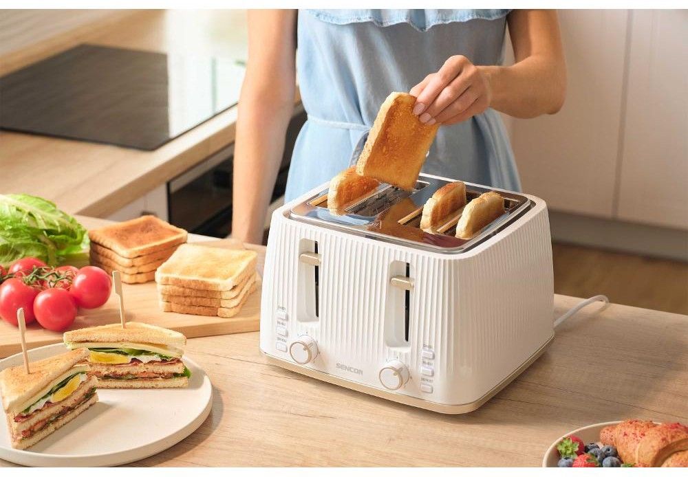 Тостер Sencor 1860Вт, підігрів, розморожування, 4 слоти, пластик, білий