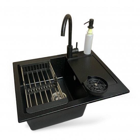Набір кухонний Adamant Minimal, штучний камінь, прямокут., з крилом, 615х495х200мм, чаша - 1, врізна, антрацит + змішувач + дозатор + ополіскувач склянок + коландер