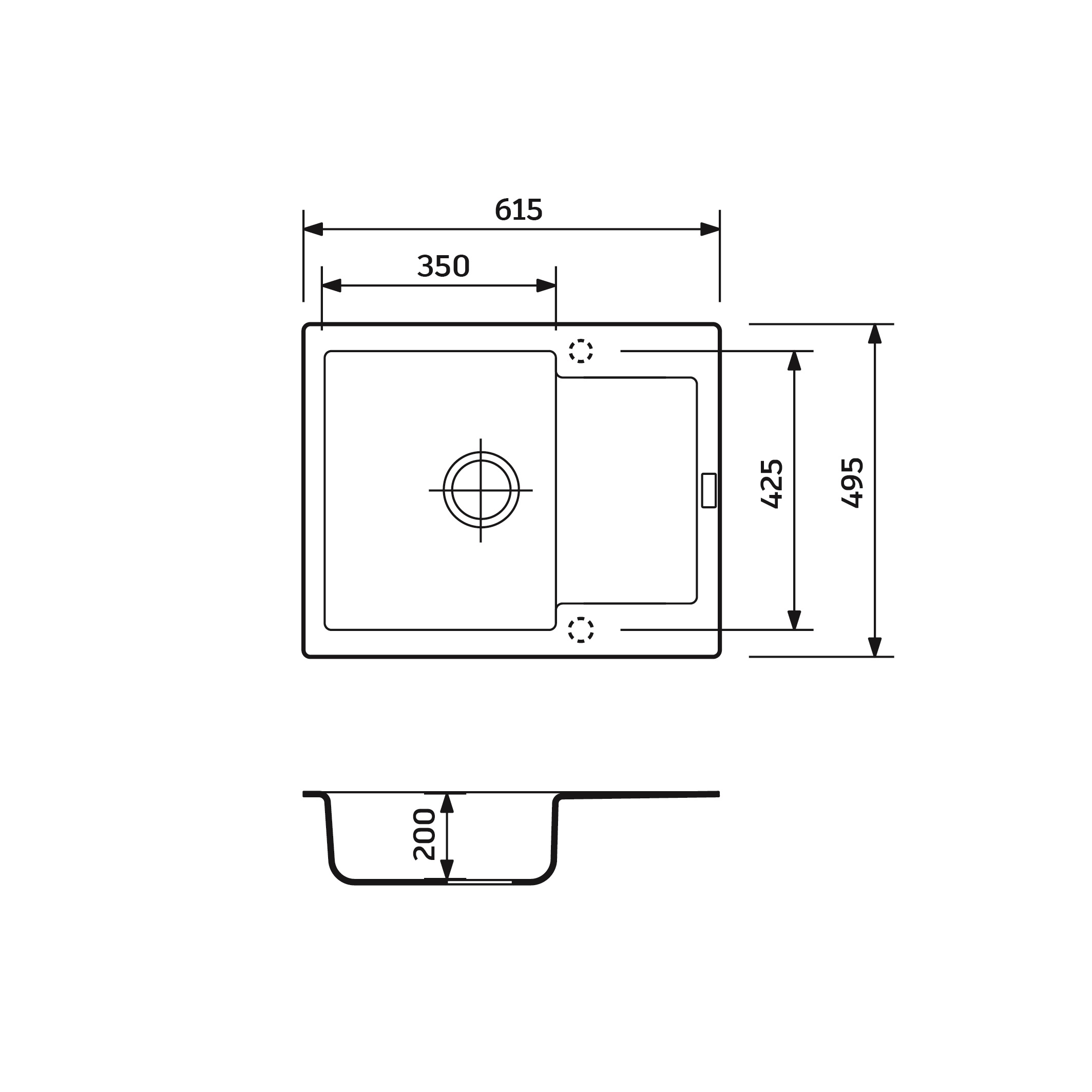 Кухонна мийка Adamant Minimal, штучний камінь, 615х495х200 мм (4824296106404)