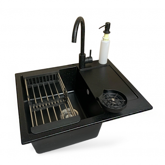 Властивості граніту Deante: стійкість до ударів, витривалість при високій температурі, стійкість до вигорання, термічний удар. Мийка з сифоном для підключення до посудомийної машини. Аксесуари із автоматичним відключенням зливу. Гідрофобні властивості відштовхують молекули води. Спеціальний засіб, безпечний для очищуваних поверхонь. Тільки найкращі матеріали, якість яких підтверджено лабораторними випробуваннями. З'єднувальні шланги у комплекті, 45 см.