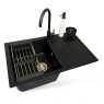 Опис Набір кухонний Adamant Horizon, штучний камінь, прямокут., з крилом, 780х495х230мм, чаша - 1, врізна, антрацит + змішувач + дозатор + ополіскувач склянок + коландер