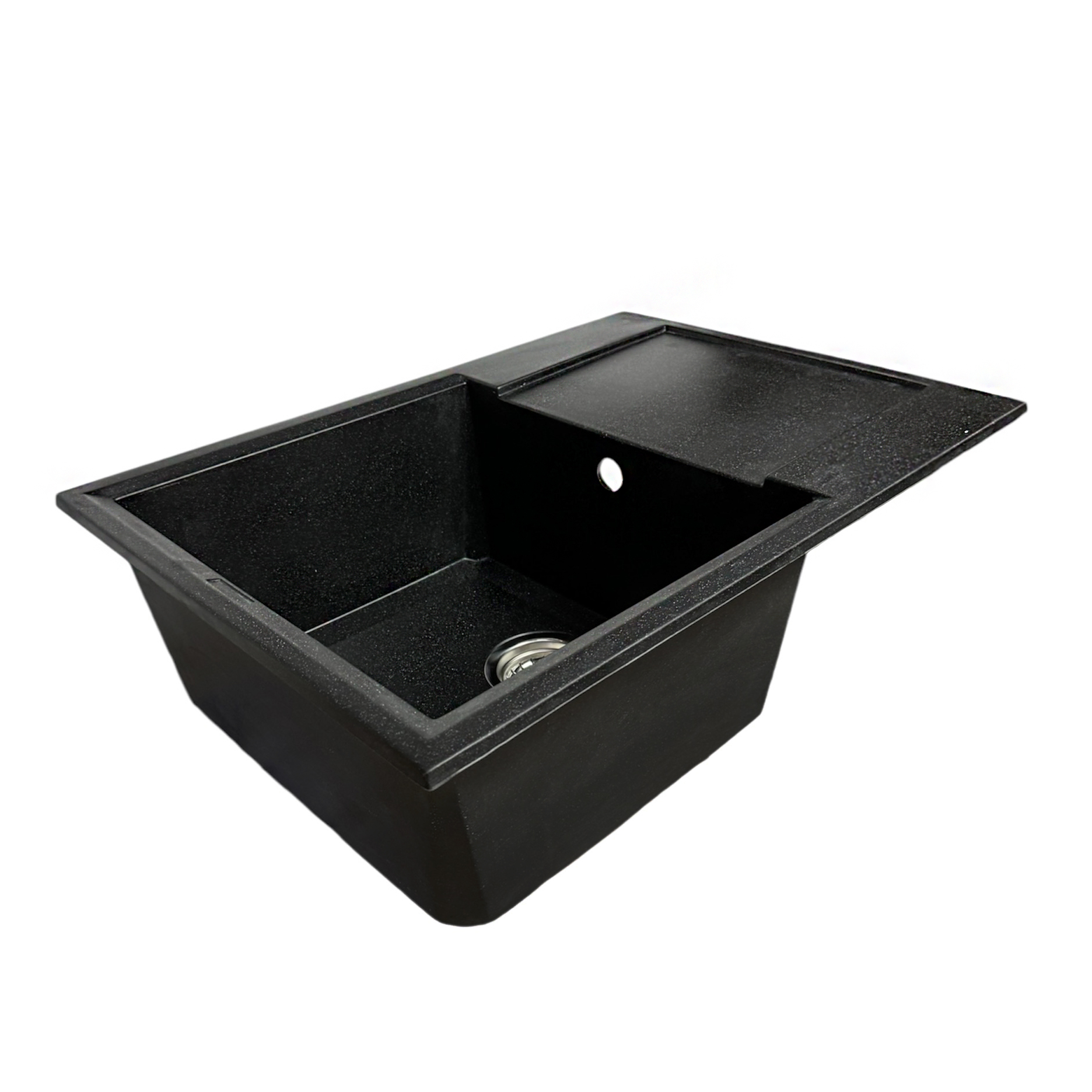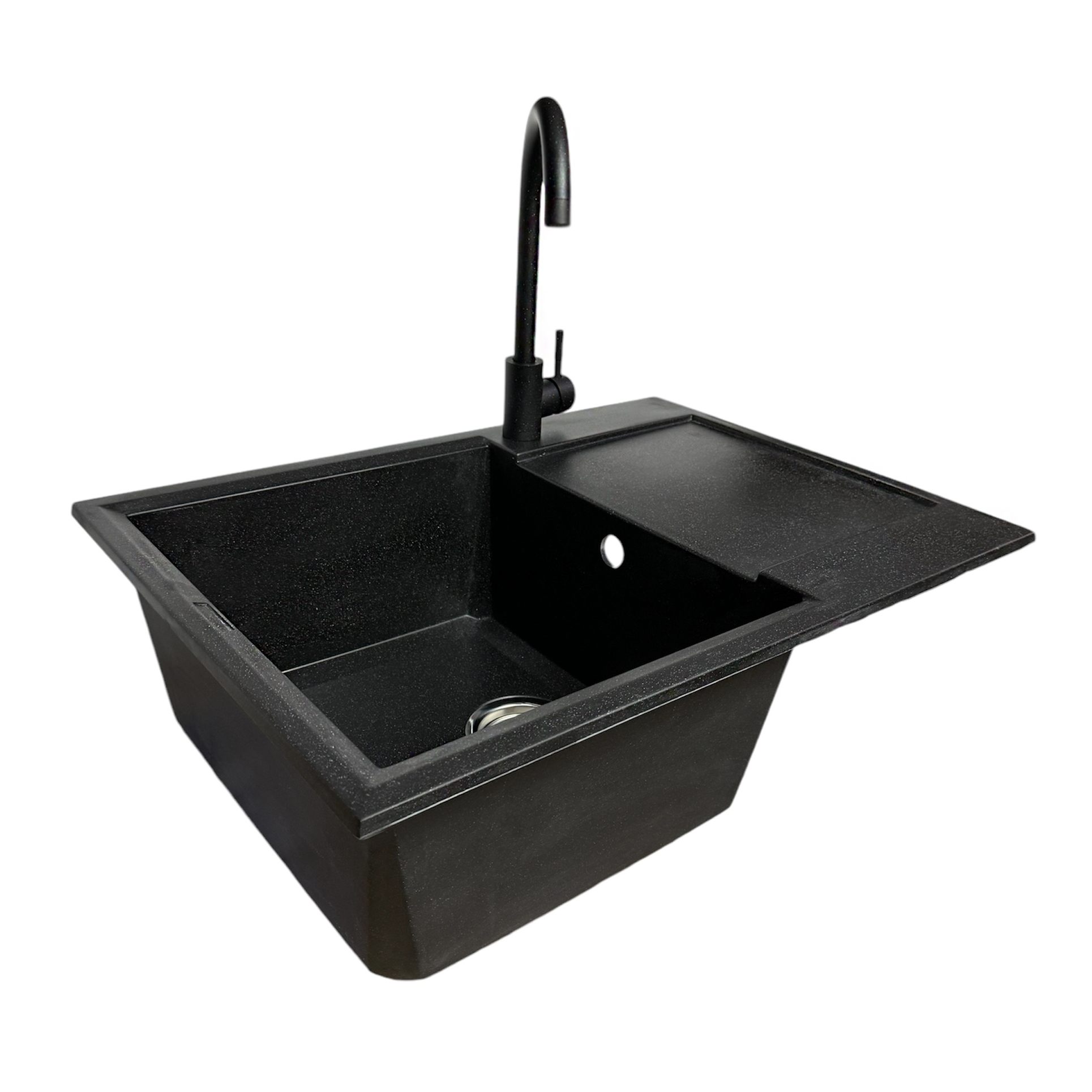Опис Набір кухонний Adamant Horizon Medium, штучний камінь, прямокут., з крилом, 700х500х230мм, чаша - 1, врізна, чорний + змішувач