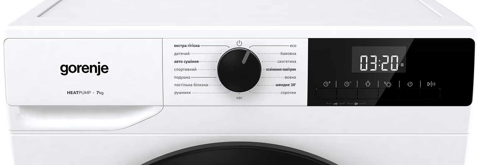 Головна - Побутова техніка, інструменти та товари для дому - Велика побутова техніка - Сушильні машини - Gorenje - Сушильна машина Gorenje тепловий насос, 7кг, A+, 51см, дисплей, 15 програм, білий