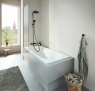 Настінний термостат має вилив для ванни та аквадимер, який дозволяє перемикатися між ванною і душем. Для ручного душу передбачений окремий механічний перемикач, що забезпечує інтуїтивне керування. Ручна лійка Vitalio Comfort 110 підтримує режими Rain і Jet і встановлюється на ковзаючому тримачі для зручного регулювання висоти. Максимальна витрата води складає 7,4 л/хв при тиску 3 бар.