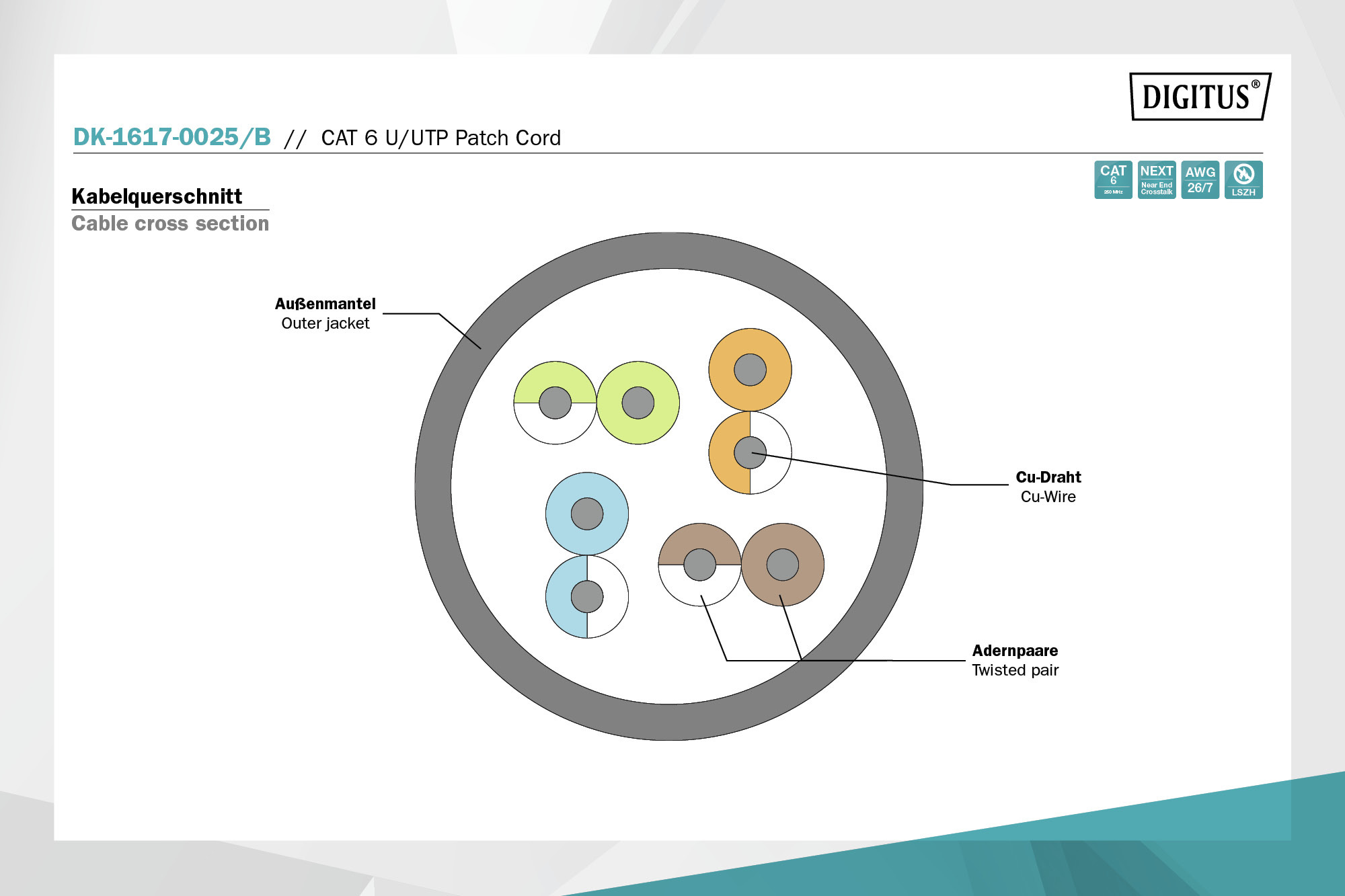 DIGITUS DK-1617-0025/B — 25 см класичного CAT 6. Коли 50 см — це вже забагато, а 1 Гбіт + PoE потрібні без зайвих витрат.