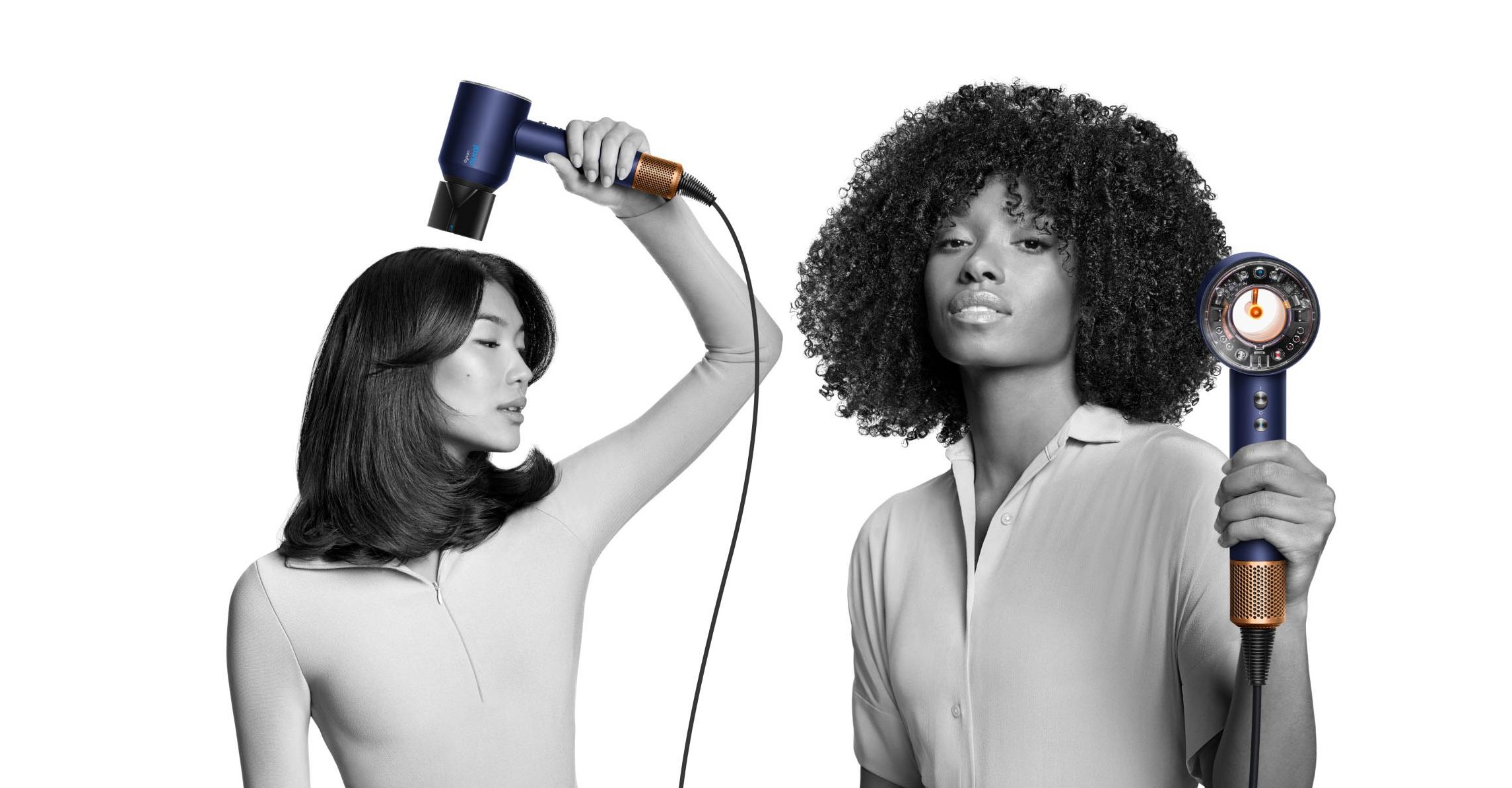 Дифузор Wave+Curl реалізує концепцію «одна насадка, два режими». У режимі Dome повітря затягується в купол і м’яко проходить крізь волосся, підкреслюючи природні хвилі або завитки й роблячи контур більш виразним. У режимі Diffuse повітря розподіляється через довші зубці, що дає змогу працювати глибше з пасмами та формувати текстурні, об’ємні локони й кучері. Додатково в комплекті є насадка-концентратор для спрямованого потоку, насадка-гребінь із широкими зубцями, насадка для делікатного висушування та насадка для неслухняного волосся з орієнтацією на вирівнювання.
