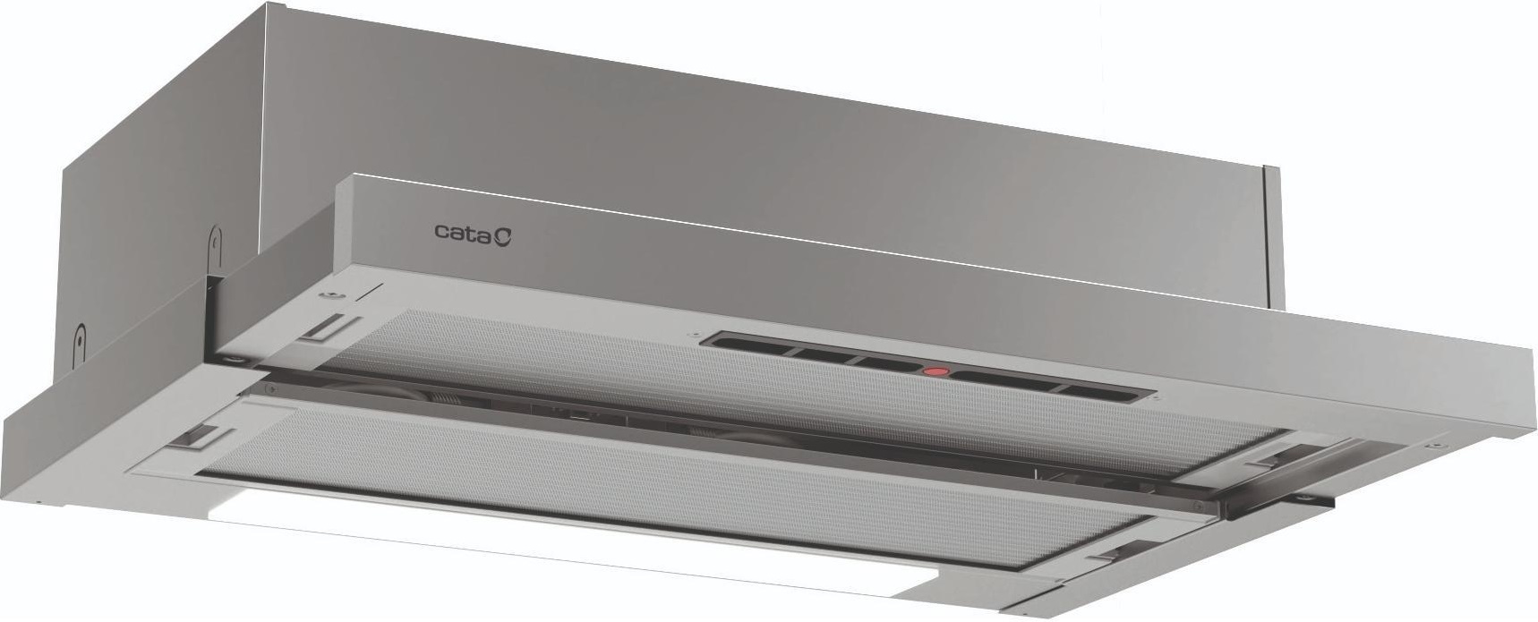 Cata TFK 6005 — сучасна телескопічна витяжка шириною 60 см, яка повністю вбудовується у навісну шафу та висувається лише під час готування. Корпус і висувна панель з якісної нержавіючої сталі з покриттям — стильно, надійно та легко чиститься. Продуктивність 360 м³/год достатня для кухонь площею до 12–15 м² або для 4-конфоркових плит з інтенсивним смаженням. Дві швидкості, зручний механічний слайдер, енергоефективний двигун класу B та яскраве LED-освітлення роблять її практичною та економічною в експлуатації.