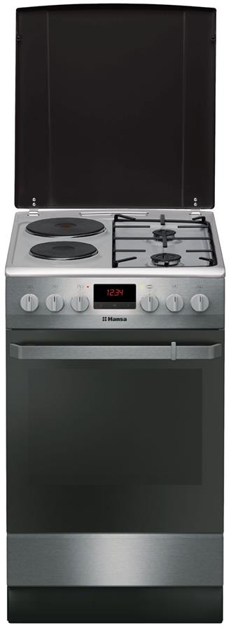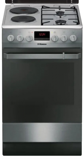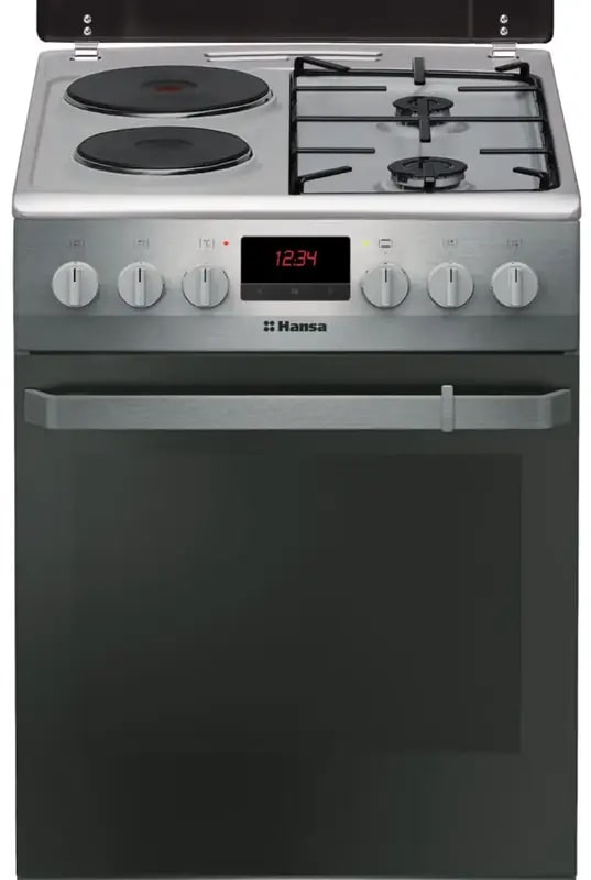 Hansa FCMX58290 – це комбінована плита 2+2, що поєднує газові та електричні конфорки для універсального приготування страв. Духова шафа об'ємом 62 літри підтримує 8 режимів нагріву, включно з грилем, конвекцією, нижнім нагрівом та розморожуванням. LED-дисплей допомагає контролювати час роботи, а функція швидкого розігріву дозволяє досягти потрібної температури за кілька хвилин. Емаль EasyClean та парове очищення забезпечують простий догляд за внутрішньою камерою. Газ-контроль, трискляні дверцята та емальована кришка підвищують безпеку й комфорт користування.