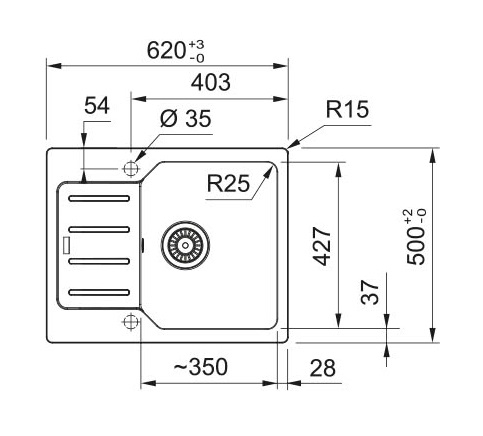 Опис Мийка кухонна Franke City, фраграніт, прямокутник, з крилом, 620х500х190мм, чаша - 1, врізна, оборотна, UCG 611-62, сірий камінь