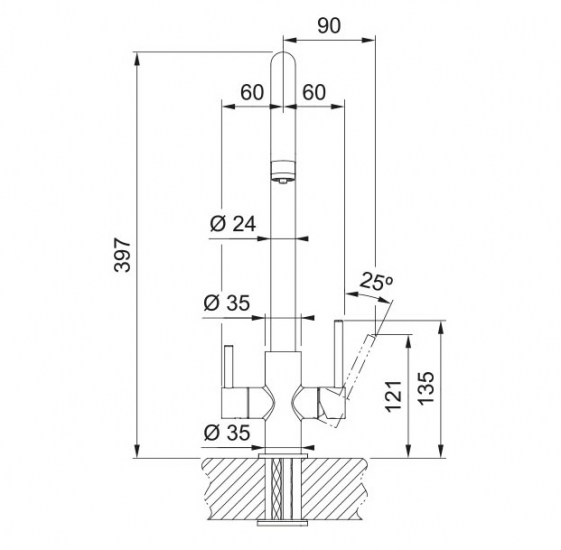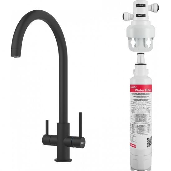 Опис Змішувач для кухні Franke Lina Clear Water, довж.виливу - 216 мм, поворотний, 1+1 фільтр, чорний матовий