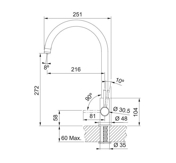 Змішувач Franke Lina Smart 160.0702.681 оснащений поворотним виливом на 360°, що дозволяє охоплювати більшу площу мийки та використовувати його в острівних кухнях. Бічний важіль відкривається вперед, тому модель зручна для монтажу біля стіни. У комплекті з ним постачається водяний фільтр, який забезпечує очищення на рівні ультрафільтрації та не затримує корисні мінерали. Активоване кокосове вугілля ефективно усуває запахи та хлор, а малий розмір пор дозволяє затримувати мікропластик та біологічні забруднення. Вбудований байпас забезпечує швидку заміну картриджа без перекривання води.