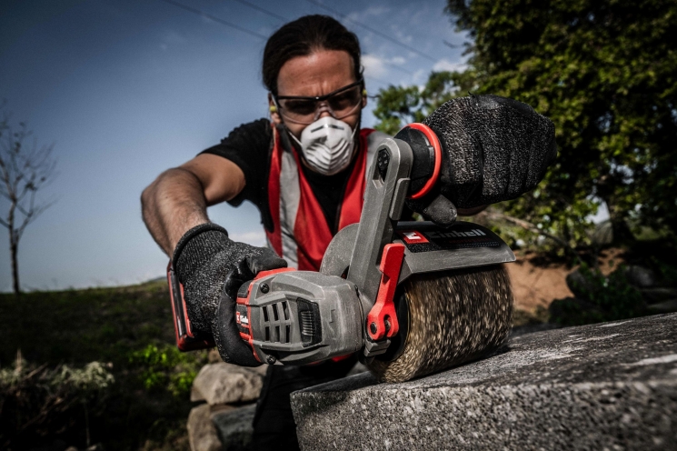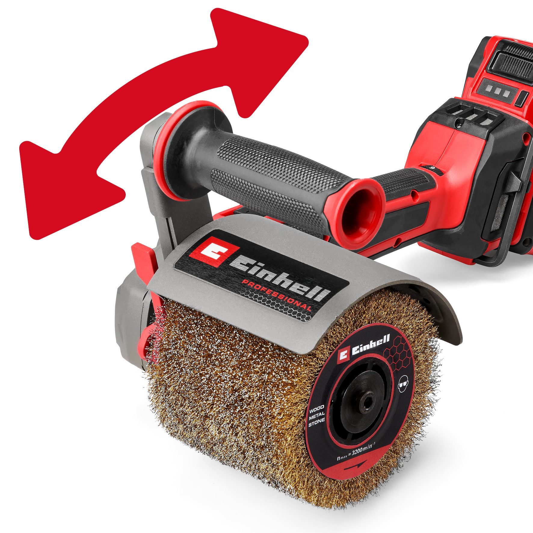 Einhell Professional TP-BR 18/32 Li BL – Solo — багатофункціональна акумуляторна щіткова шліфувальна машина для майстерень, ремонтних і реставраційних робіт. Інструмент обробляє дерево, метал та камінь, дає змогу знімати старі покриття, очищати поверхні та формувати виражену текстуру.