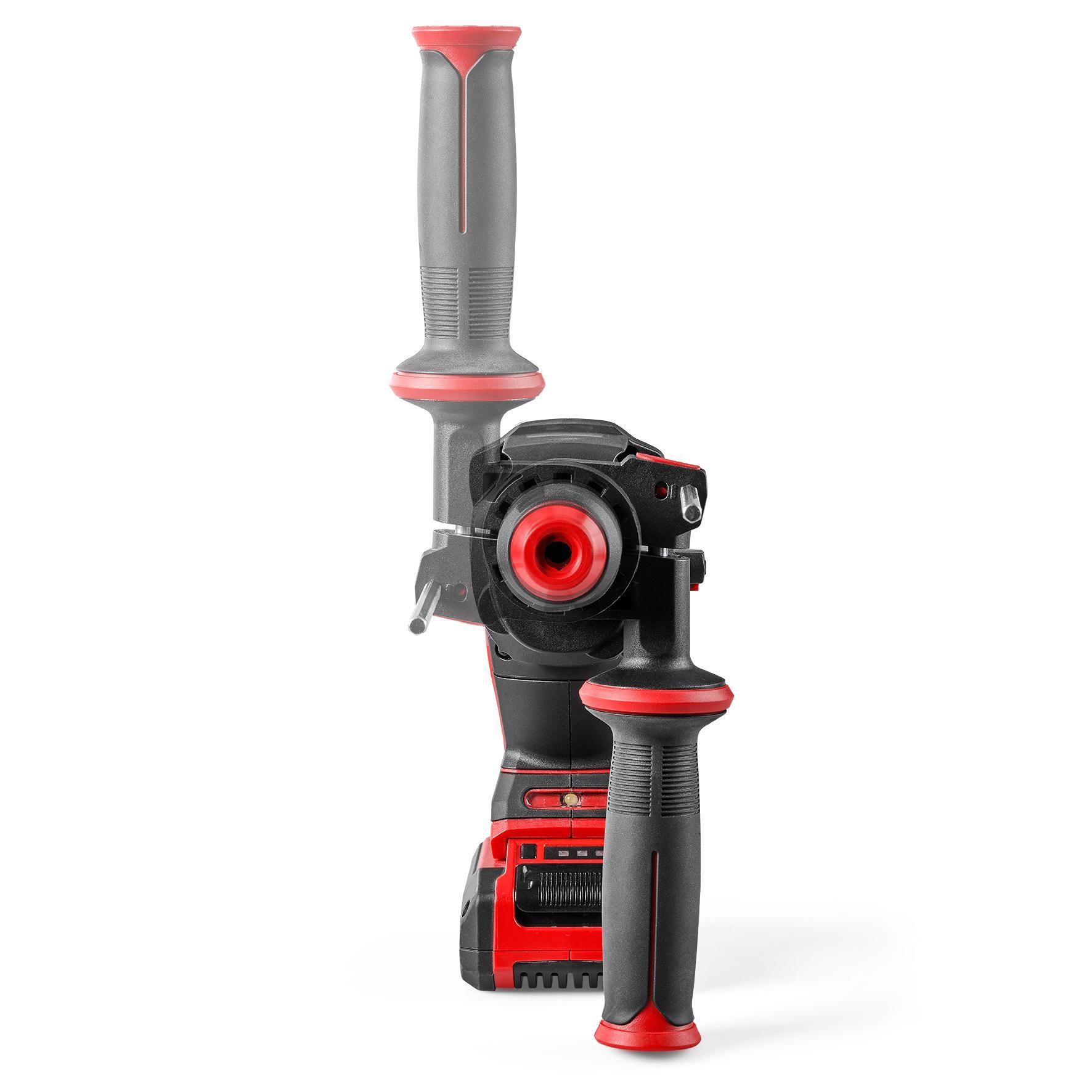 Ергономічні зони з м’якою накладкою зменшують вібрацію й роблять інструмент комфортним під час тривалого застосування. Для зберігання та транспортування передбачений пластиковий кейс E-Case S-F. Перфоратор постачається без акумулятора і зарядного пристрою, але підтримує всі батареї Power X-Change 18 В. Оптимальний режим роботи досягається з акумуляторами ємністю від 3,0 Аг.