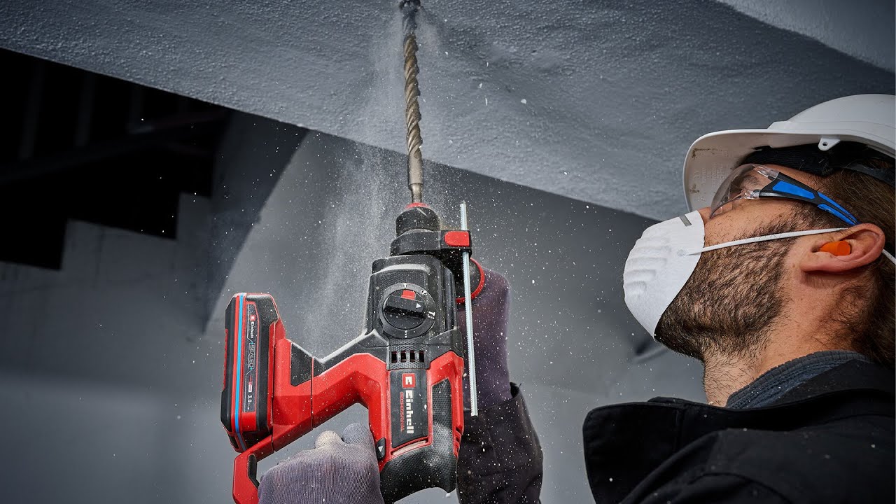 Einhell Professional TP-HD 18/22 D Li BL – Solo — універсальний акумуляторний перфоратор, який поєднує чотири функції в одному корпусі. Основний перемикач дозволяє швидко переходити між режимами: свердлінням, свердлінням з пневматичним ударним механізмом, довбанням із фіксацією і довбанням без фіксації. Завдяки такій конфігурації інструмент використовують для робіт у бетоні, камені, цеглі та інших міцних матеріалах.