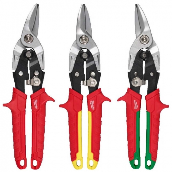 Ножиці по металу " Aviation" прямі. Ріжуть холоднокатану листову сталь товщиною до 1,2 мм, нержавіючу сталь товщиною до 0,7 мм. Руківя з накладками з двох матеріалів "DynaGrip" для комфорту в роботі і надійного захоплення. Подвійна спіральна пружина для тривалого терміну служби. Керований однією рукою фіксатор, який автоматично звільняється при зведенні руків'я.