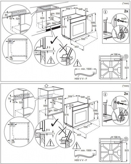 | Розміри для вбудовування ( ВхШхГ ) | 590 x 560 x 550 мм |