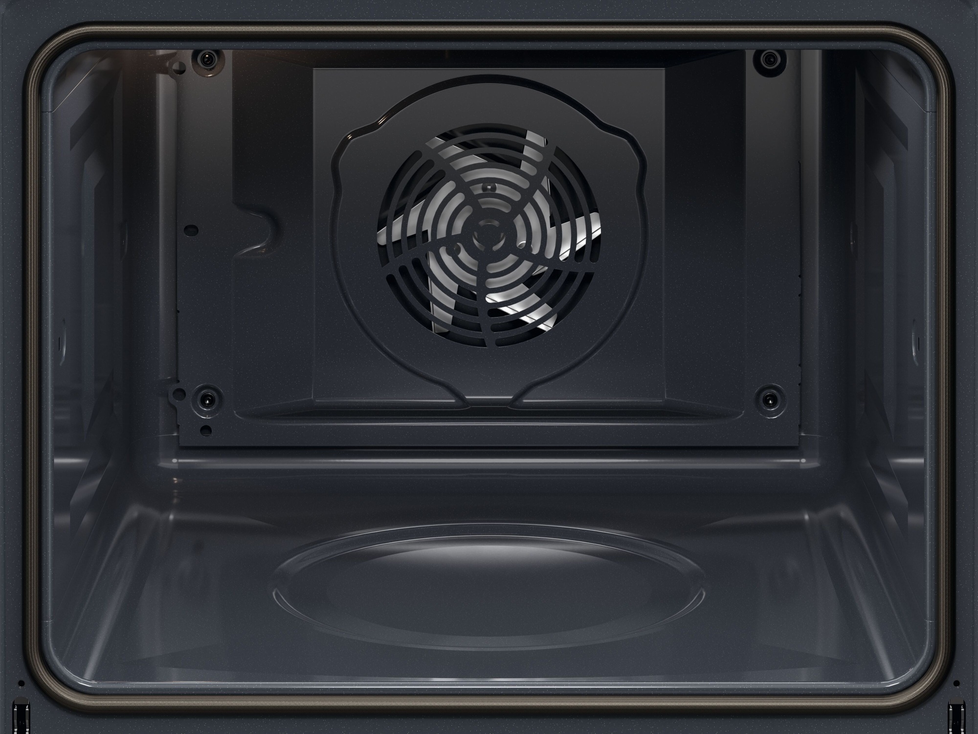 Система Even Cooking та багаторівневе готування забезпечують рівномірний розподіл гарячого повітря. Активується третій нагрівальний елемент, що дає змогу випікати на трьох рівнях одночасно — без ризику пересушування чи неповного пропікання. Функція швидкого нагрівання скорочує час розігріву камери.