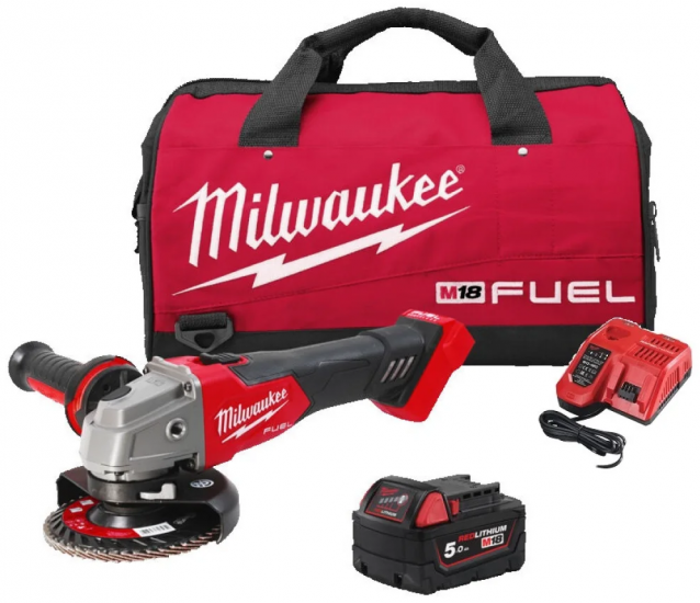 Опис Шліфмашина кутова акумуляторна Milwaukee M18 FSAG125X-501BRF 125мм 18В 1x5.0А·год 8500об/хв ЗП М12-18 FС сумка 2кг