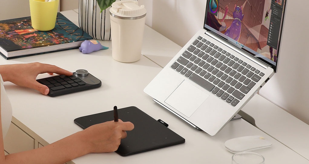 Huion Inspiroy Frego M поєднує мінімалістичний дизайн без фізичних кнопок із широкою робочою площею, що робить його зручним для малювання вдома, у студії чи в дорозі. Завдяки Bluetooth планшет легко під’єднується до комп’ютерів, смартфонів і планшетів, а USB-C забезпечує стабільне дротове з’єднання. Перо PW550S пропонує плавне передавання тиску та нахилу, що дозволяє створювати лінії з різними характеристиками. Паперова текстура поверхні робить використання ще приємнішим. Продуманий симетричний корпус і портативні розміри забезпечують комфорт у будь-яких умовах.