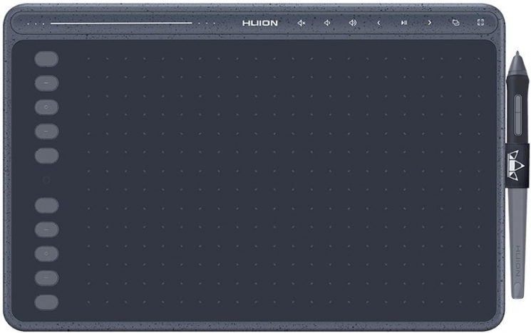 Huion HS611 вирізняється оригінальним дизайном у трьох кольорах, що дозволяє користувачам підкреслити власний стиль. Мультимедійна панель дає можливість керувати музикою та додатками, не перериваючи робочий процес. Вага всього 550 г і товщина 7,3 мм роблять планшет мобільним і зручним у транспортуванні. Перо PW500 не потребує заряджання та доступне у кольорах планшета, забезпечуючи комфортне малювання. Сенсорна панель і програмовані кнопки допомагають створити персоналізований процес роботи.