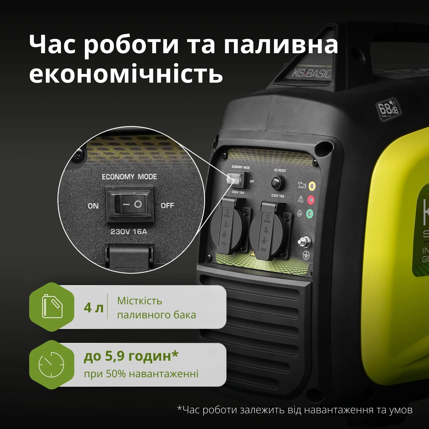 | Час безперервної роботи | 5.9 г (при навантаженні 50%) |