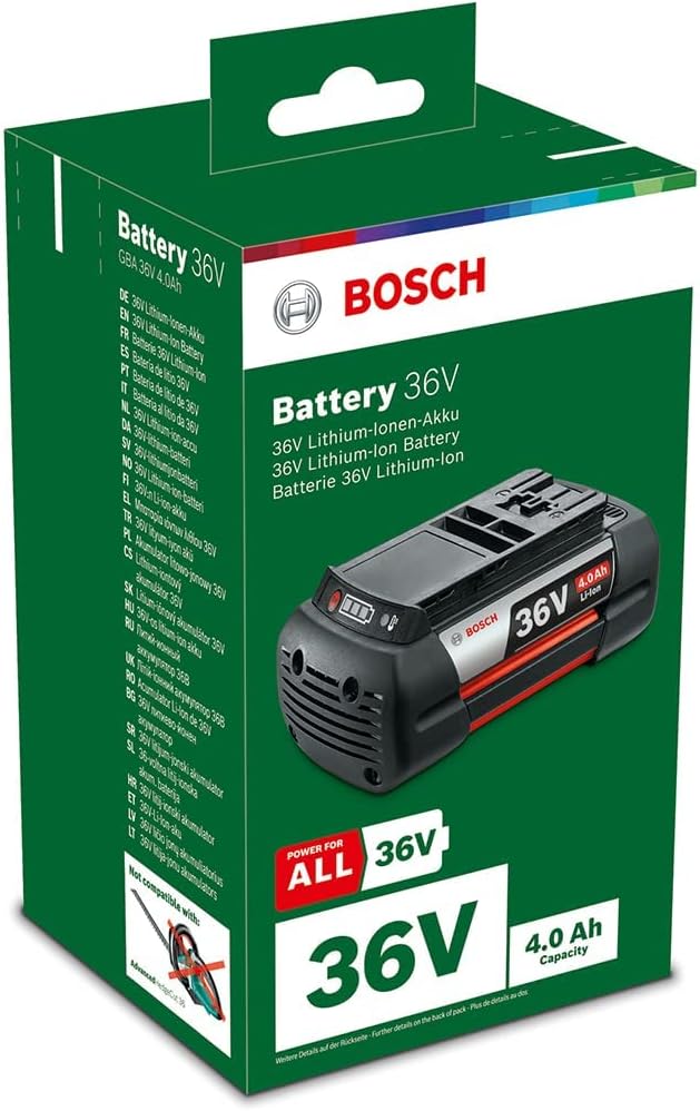 Акумулятор Bosch GBA забезпечує високу продуктивність для садових інструментів 36V та довгий час роботи без підзарядки. Світлодіодний індикатор спрощує контроль заряду, а відсутність саморозряду гарантує стабільність під час зберігання.