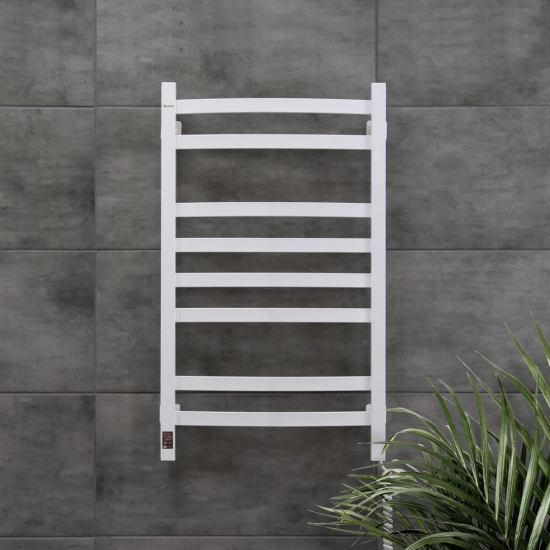 Рушникосушарка Navin Avalon 12-103053-4880 створена для комфортного сушіння рушників і підтримання приємної температури у ванній кімнаті. Модель має конструкцію у формі драбинки з вісьмома секціями, що сприяє рівномірному розподілу тепла. Виріб виготовлений із фарбованої сталі, стійкої до корозії завдяки порошковому покриттю. Сенсорний регулятор зі вбудованим таймером дозволяє налаштовувати роботу одним дотиком. Праве розташування шнура забезпечує зручність монтажу в більшості інтер'єрних конфігурацій.