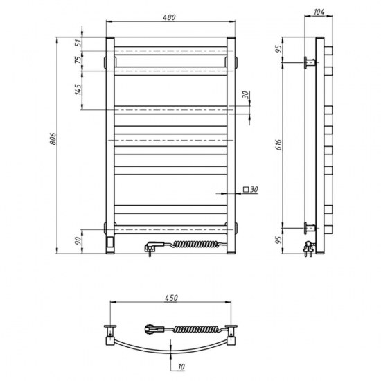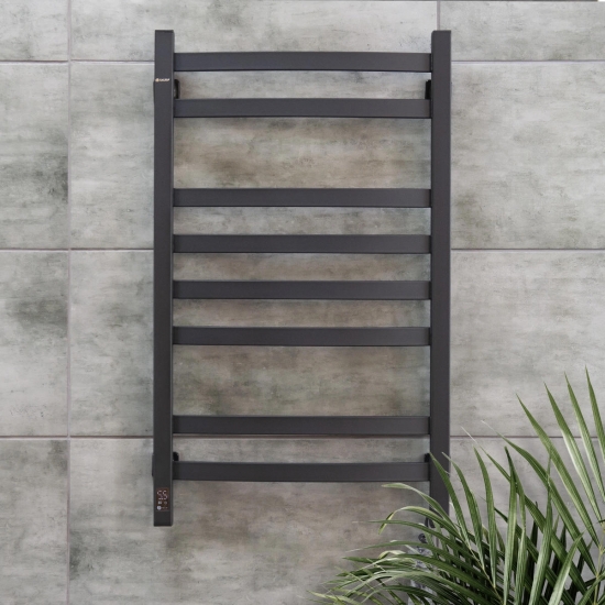 Опис Рушникосушка Navin електрична Avalon, 800х480х104мм, таймер-регулятор, сталь, чорний муар, праве підключення