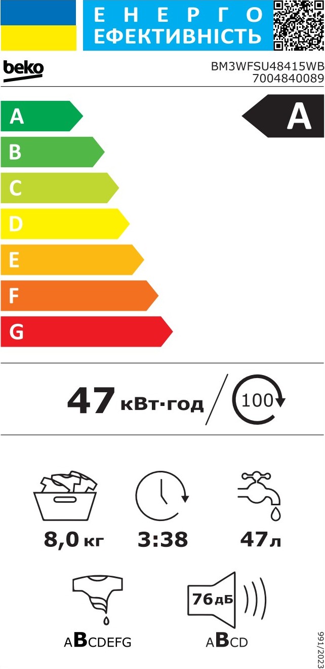 | Швидкість віджиму ( максимальна ) | 1400 об/хв |