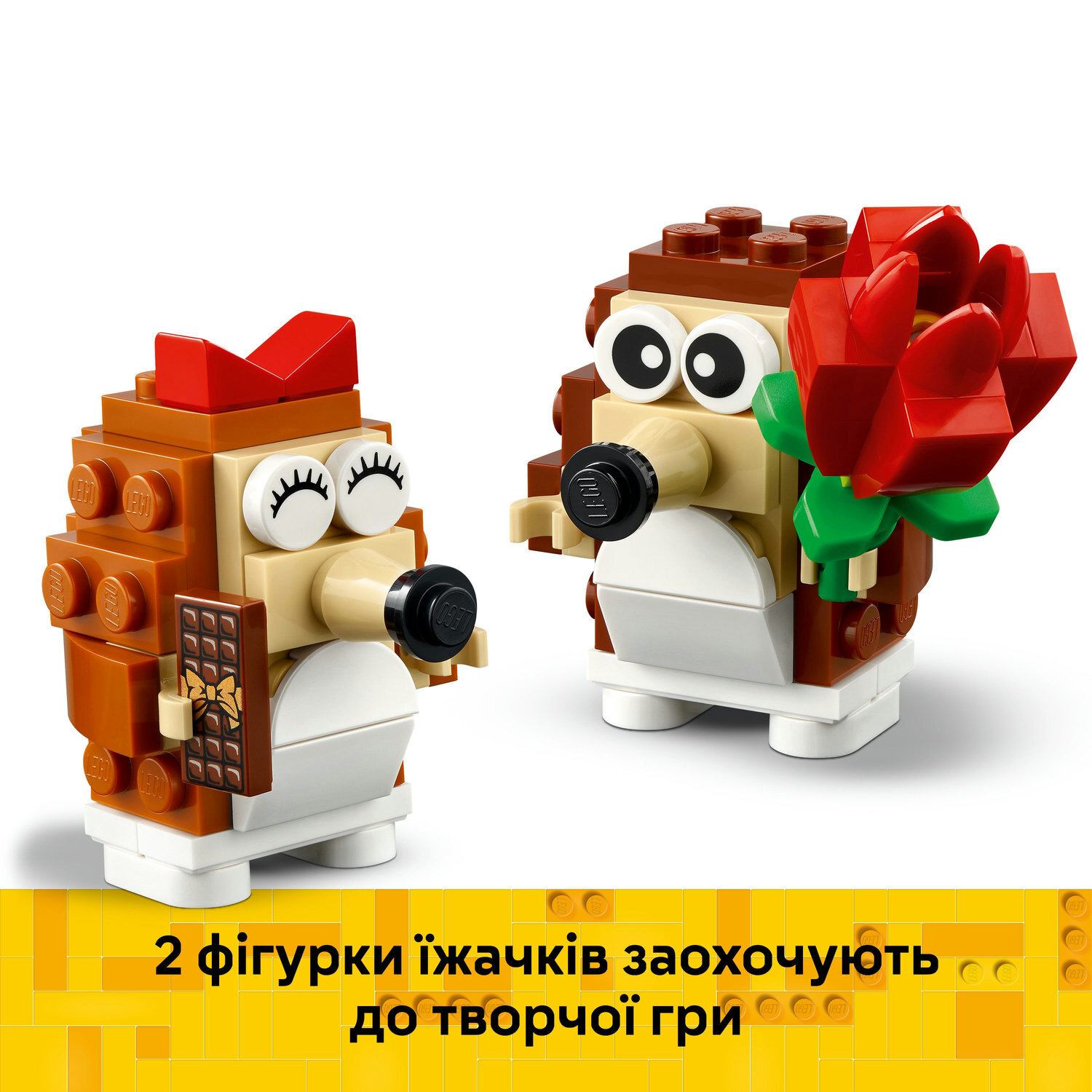 Цей ігровий набір стане чудовим подарунком LEGO на будь-яке свято, зокрема на День Святого Валентина, і може бути доданий до інших наборів для конструювання LEGO (продаються окремо), щоб діти могли насолоджуватися ще більшою кількістю історій про тварин. Після завершення гри їжачки стануть чудовим експонатом на полиці або тумбочці біля ліжка.