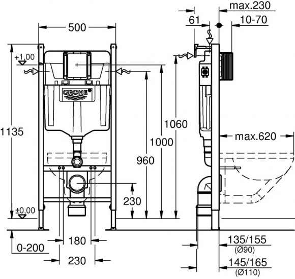 Комплект Grohe Mega Bundle унітаз з інсталяцією, раковина із змішувачем та душова система (38555MBK)