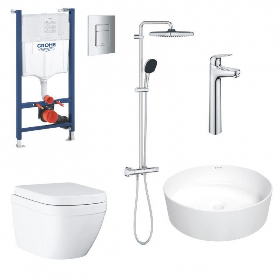 Комплект Grohe Mega Bundle унітаз з інсталяцією, раковина зі змішувачем та душова система