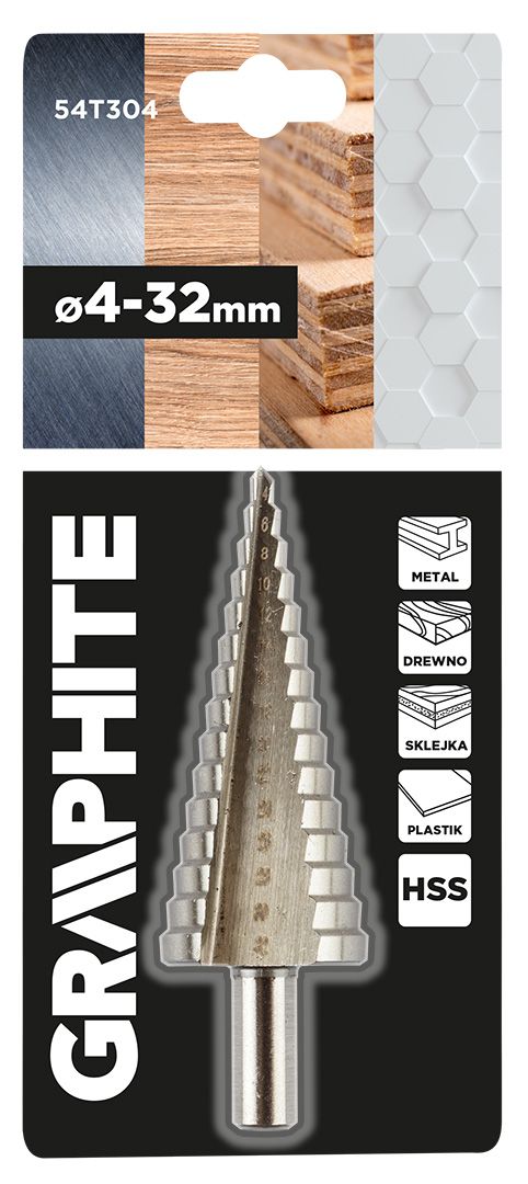 Опис Свердло по металу ступінчасте GRAPHITE HSS 4x32мм