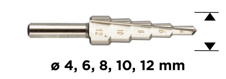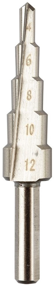 Ступінчасте свердло GRAPHITE HSS 4×12 мм 54T302 — універсальний інструмент для свердління отворів різних діаметрів у тонких матеріалах, таких як метал, пластик і тонкі листові деталі. Завдяки ступенчатій (конусній) формі ви можете поступово збільшувати діаметр отвору, не змінюючи свердла, що значно економить час і підвищує ефективність роботи. Свердло виготовлене зі високошвидкісної сталі (HSS), яка забезпечує високу зносостійкість, стійкість до нагрівання при свердлінні та тривалий ресурс інструмента.