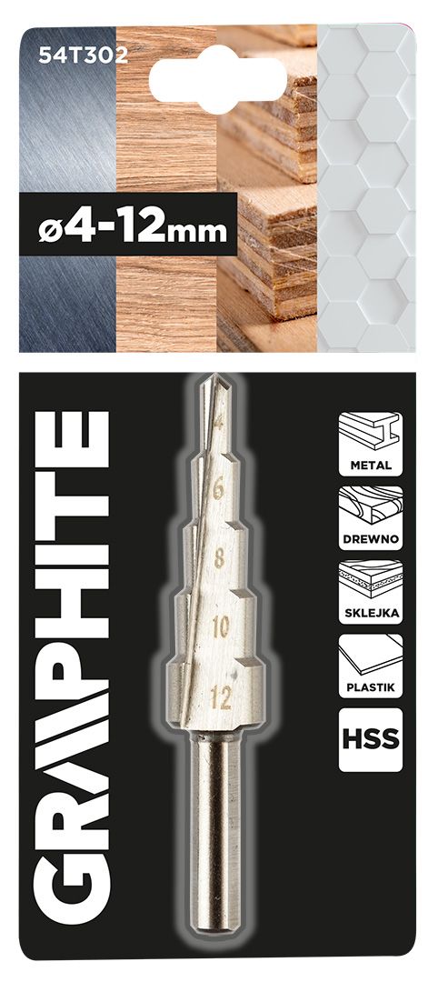 Опис Свердло по металу ступінчасте GRAPHITE HSS 4x12мм