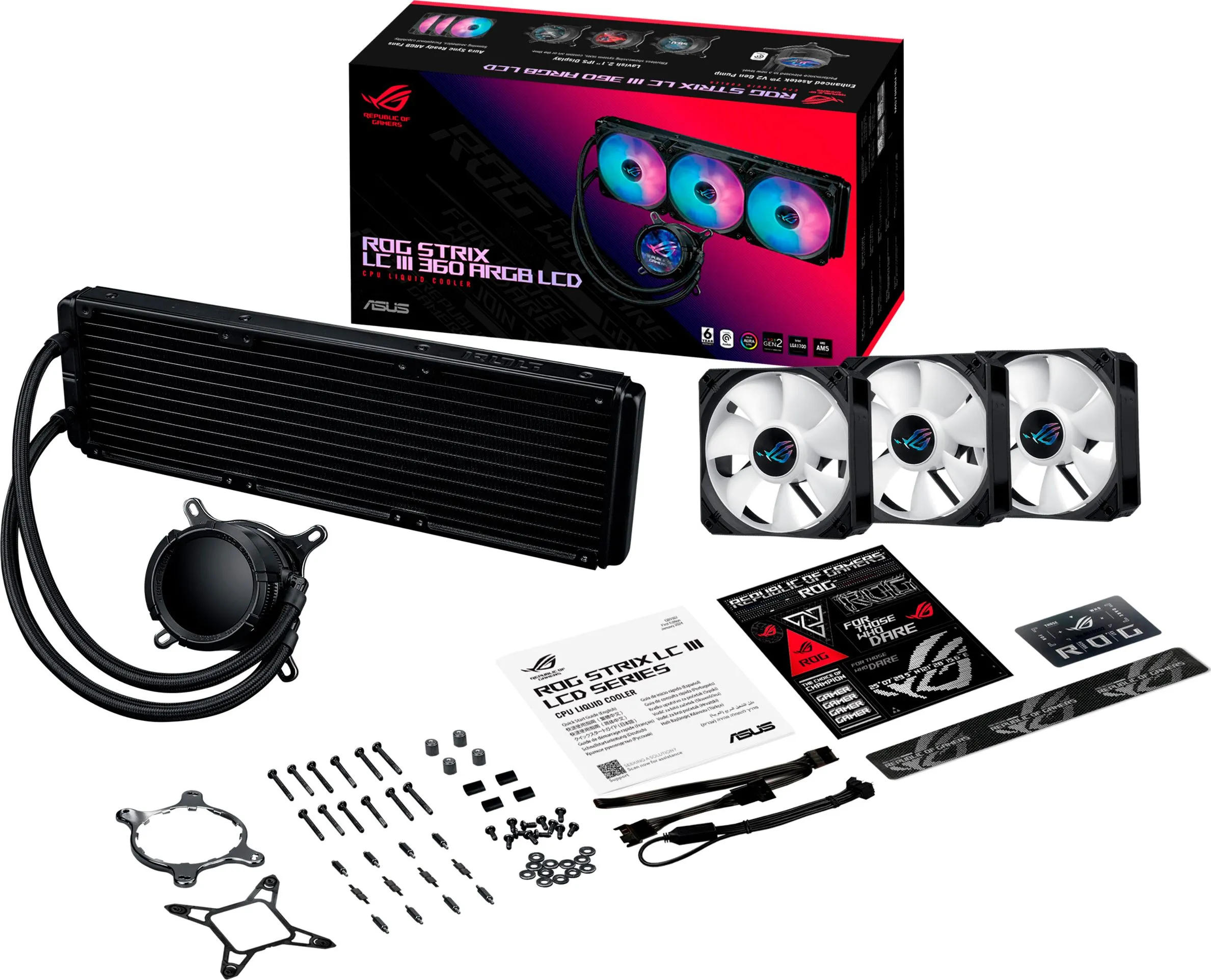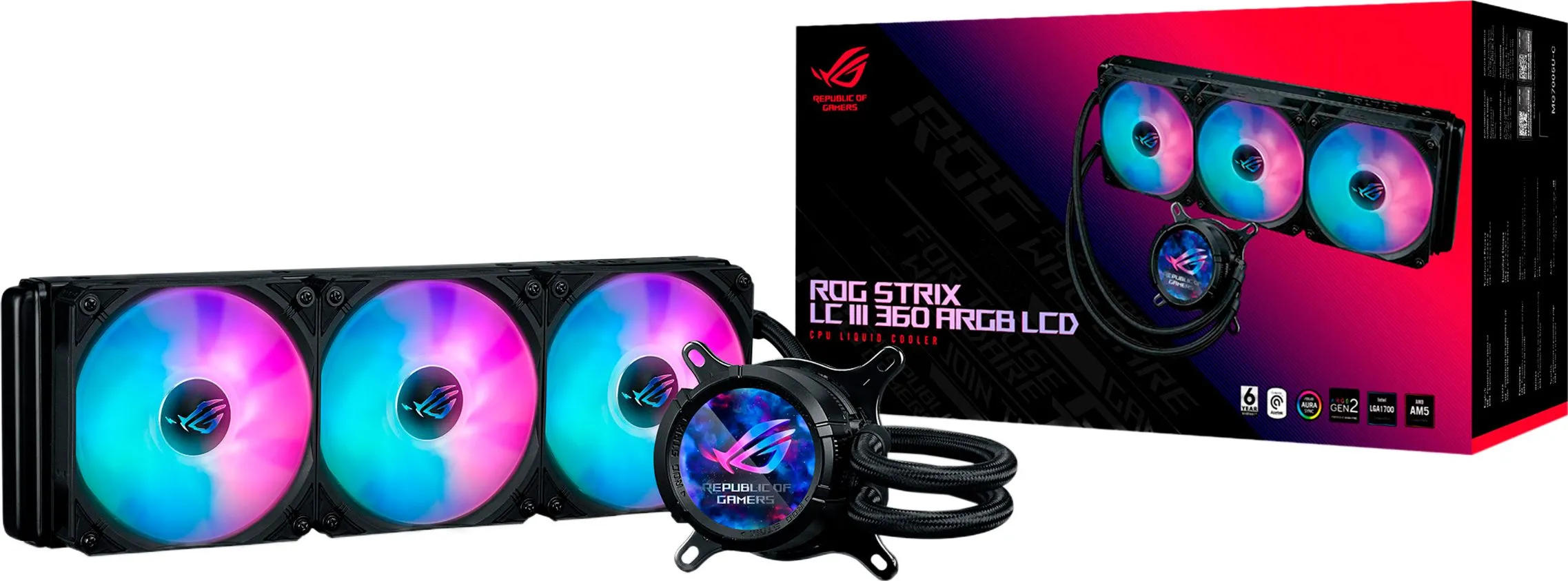 ROG STRIX LC III 360 ARGB LCD – це комплексна система рідинного охолодження з акцентом на продуктивність і персоналізацію. Мідна контактна пластина разом із помпою Asetek Gen7 v2 ефективно відводить тепло від процесора під навантаженням. Вбудований 2,1-дюймовий IPS-дисплей дозволяє виводити системні параметри, графіку або власні зображення з можливістю повороту. Вентилятори ROG STRIX AF-12S ARGB забезпечують активний повітряний потік і підтримують пасивний режим роботи. Міцні трубки в захисному обплетенні та стиль ROG доповнюють сучасні комп’ютерні конфігурації.