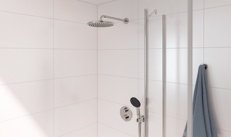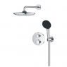 Душова система Grohe QuickFix Precision прихованого монтажу створена для організації сучасного та функціонального душового простору. Термостатичний змішувач дозволяє точно підтримувати задану температуру води протягом усього часу користування. Перемикання між верхнім і ручним душем відбувається плавно та зрозуміло. Верхній душ Vitalio Start 250 забезпечує рівномірний розподіл води, а ручний душ з двома режимами дозволяє змінювати характер струменя залежно від потреб. Прихований монтаж з використанням Rapido SmartBox допомагає зберегти акуратний вигляд стіни.