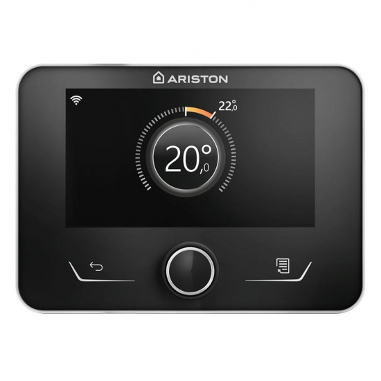 Ariston SENSYS HD BLACK поєднує функції керування та моніторингу системи опалення в одному пристрої. Інтерфейс дозволяє переглядати основні робочі параметри та змінювати налаштування без додаткових модулів. Підтримується керування температурою опалення і гарячого водопостачання з урахуванням режимів дня і ночі. Дисплей із підсвічуванням спрощує взаємодію та підвищує зручність використання. Пристрій відображає інформацію про заощаджену енергію та зменшення викидів CO₂ при використанні відновлюваних джерел.
