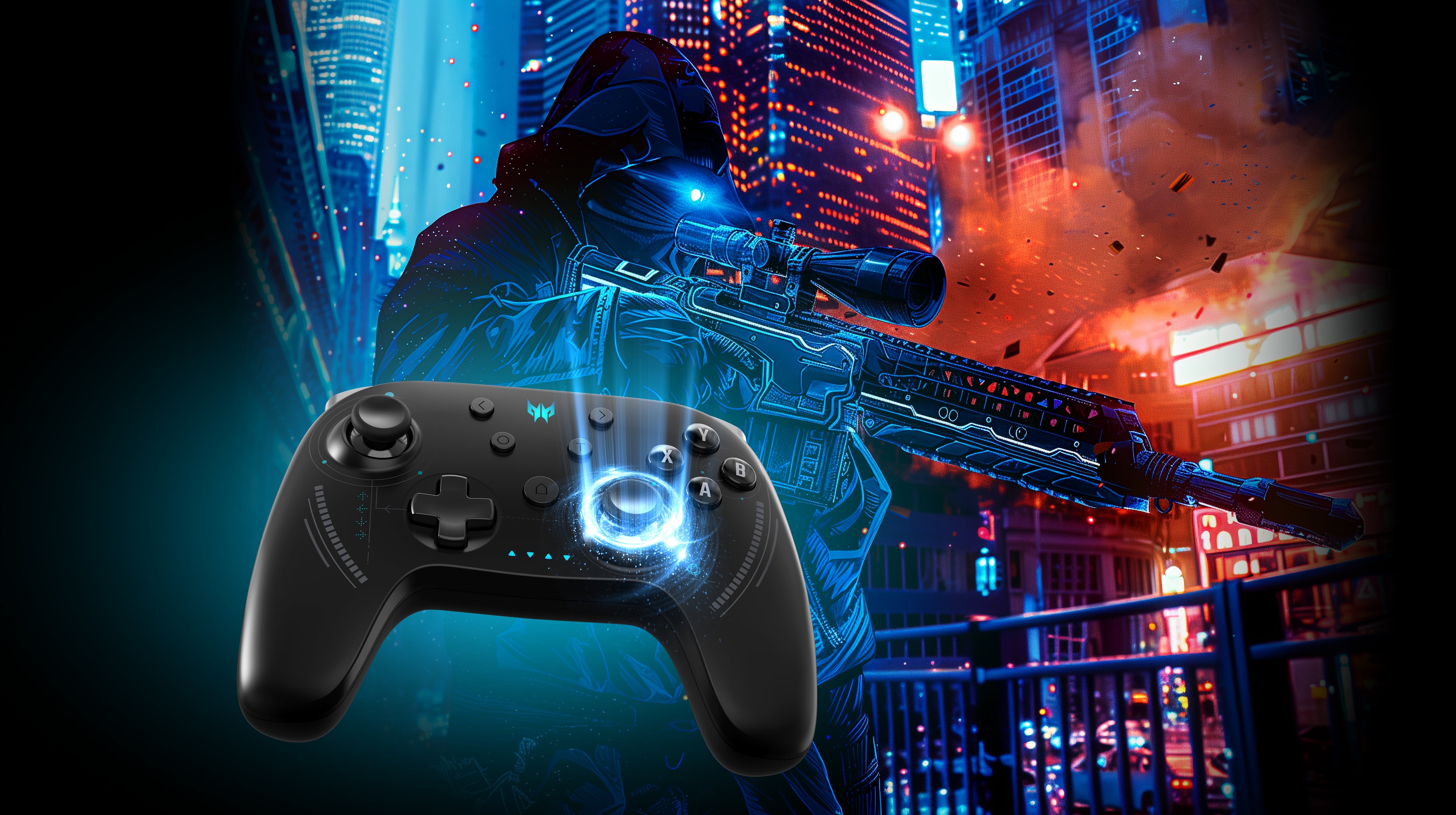 Acer Predator PGR300 (GP.OTH11.06G) — преміальний бездротовий геймпад з технологією Hall Effect у джойстиках та тригерах для максимальної точності та повної відсутності дрифту. Подвійні вібромотори, гіроскоп, 16 програмованих кнопок, режим Turbo та знімні джойстики з накладками. Універсальне підключення: Bluetooth 5.0, RF 2.4 ГГц, USB-C. Сумісний з Windows 10/11, Android 9+, iOS 14.5+, Nintendo Switch. Час роботи до 25 годин від 2×AA батарейок, вага 200 г — ідеальний вибір для серйозних геймерів.